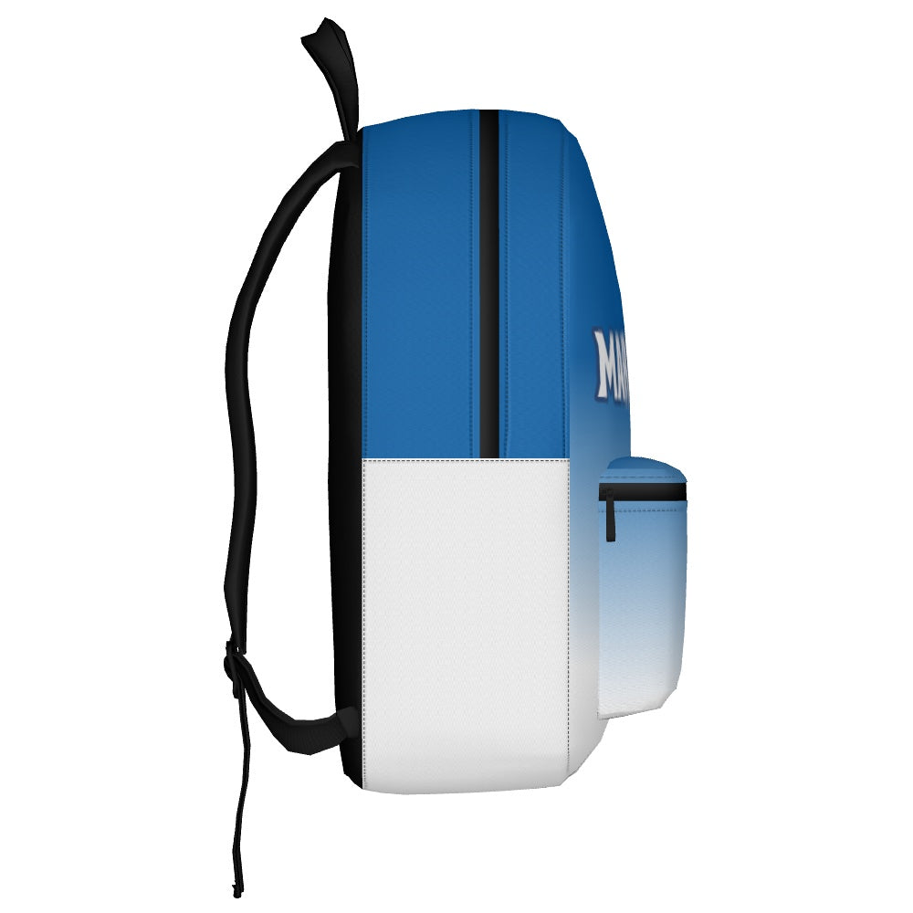 Carry all of your school or everyday essentials with this sublimated backpack. 100% polyester canvas fabric. Spacious front pouch for quick access. Durable zippers hold up to everyday use. Single mesh side pocket is perfect for a water bottle. Top grab handle for when you're on the go. Dimensions: 17x12.5x5