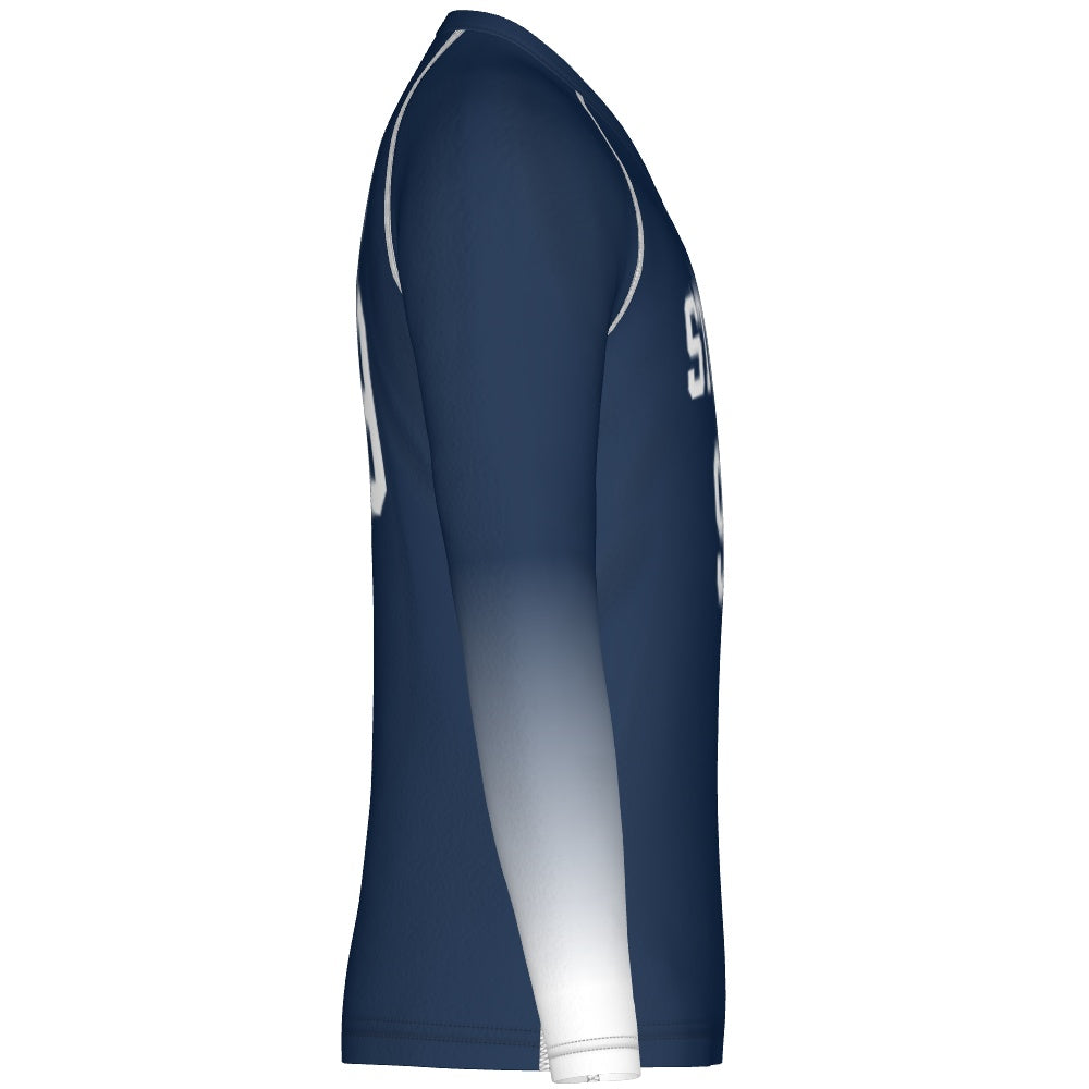 Meet the SquadGEAR Long Sleeve V-Neck Volleyball Jersey. Wear your team proudly with vibrant colors in a sublimated design that's one of a kind. 90% polyester/10% spandex, 4-way stretch fabric will give you freedom of movement to spike, jump serve, and assist on the court. The anti-microbial finish and moisture management properties will keep you feeling cool and comfortable. Raglan sleeves, flat lock stitching, and a v-neck cut give you a sharp and professional look that will be sure to impress your opponents.